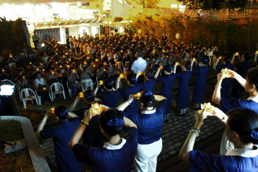 圖左:會眾點燃手上的燈,同時照亮內心的善。
