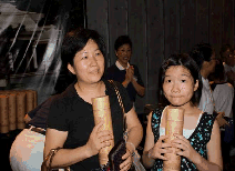 圖左:戶外的花園,座無虛席,大家用真誠的心祈福 。